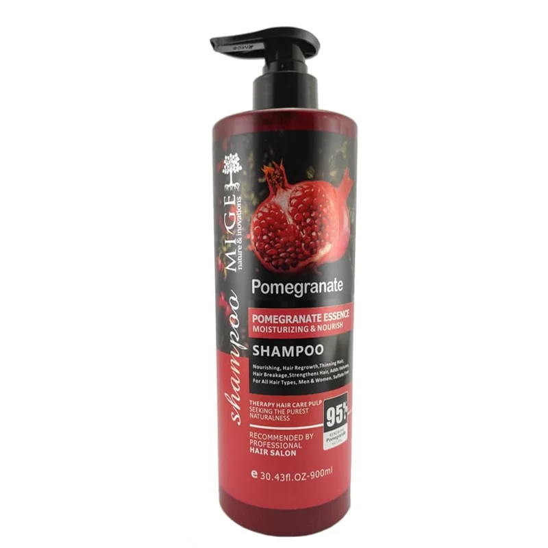 شامپو انار میگ Mige Pomegranate . یکی از بهترین نمونه های برند میگ شامپو انار میگ می باشد که محصول کشور ایتالیا است . این محصول فاقد سولفات است و مناسب موهای کراتین شده و رنگ شده می باشد و همچنین آبرسان مو بوده و باعث تقویت ریشه ی موها می گردد.